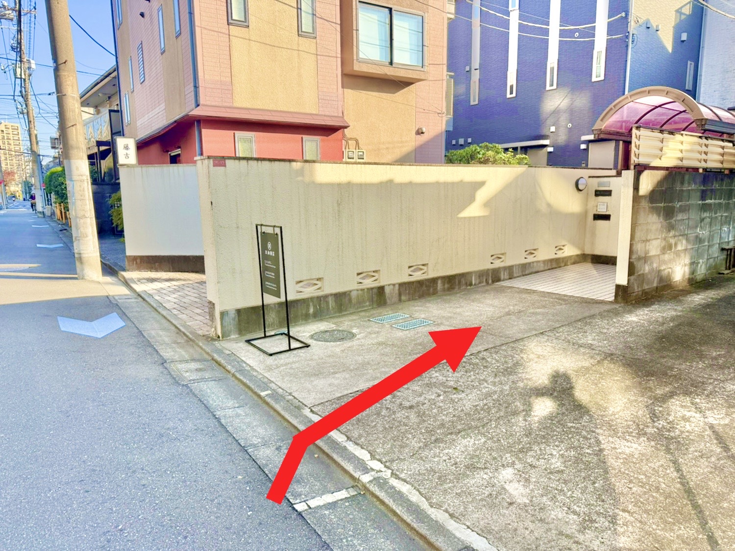 天ぷら屋「藤吉」の手前にサロンの看板があります。